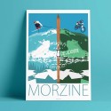 Art illustration from the series The Alps. Edited in 2017, this original poster signed Eric Garence presents one of the most beautiful and charming village of Haute Savoie Morzine-Avoriaz. As a stopover town in the Tour de France, as well as hosting the world championship of mountain biking, Morzine is as much oriented towards summer activities as winter with its immense ski area of the Portes du Soleil. A real gem of a resort!