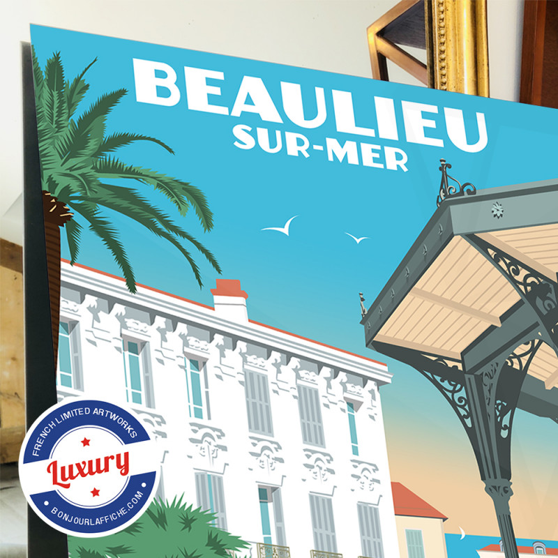 Illustration d'art faisant partie de la nouvelle collection consacrée à Beaulieu-sur-Mer, Poster original fait en collaboration avec la ville de Beaulieu-sur-Mer.